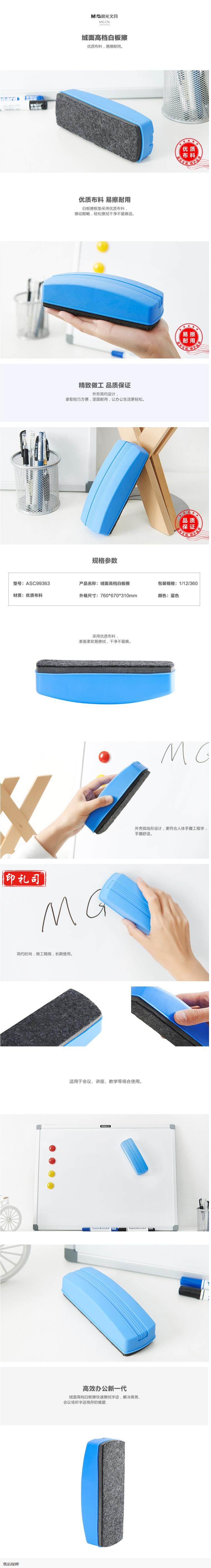 晨光ASC99363磁性板擦绒面白板擦 蓝色