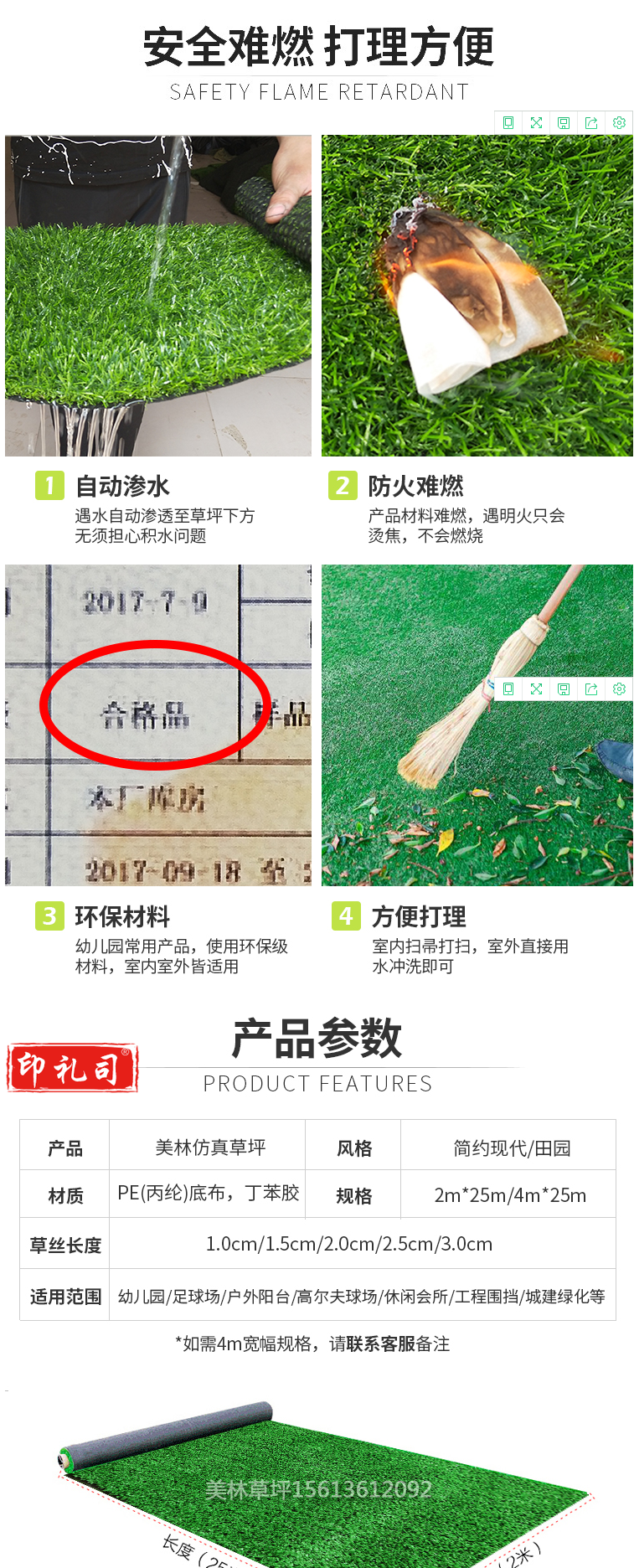 仿真草坪 塑料假草皮户外垫子 人造绿色地毯 宽1米长10米 高2.5厘米 货号:LJ