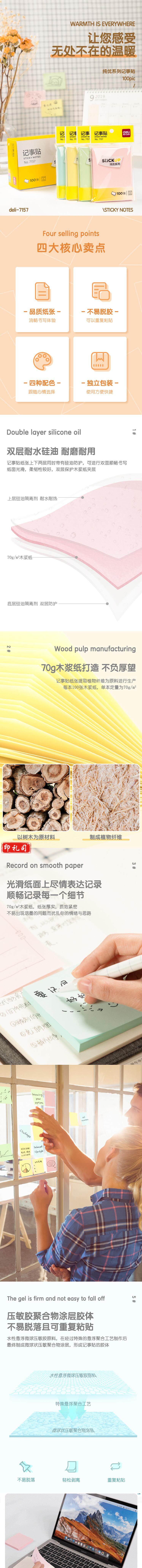 得力7157 彩色便签纸 76*101mm 留言纸/记事贴/N次贴(12袋盒)