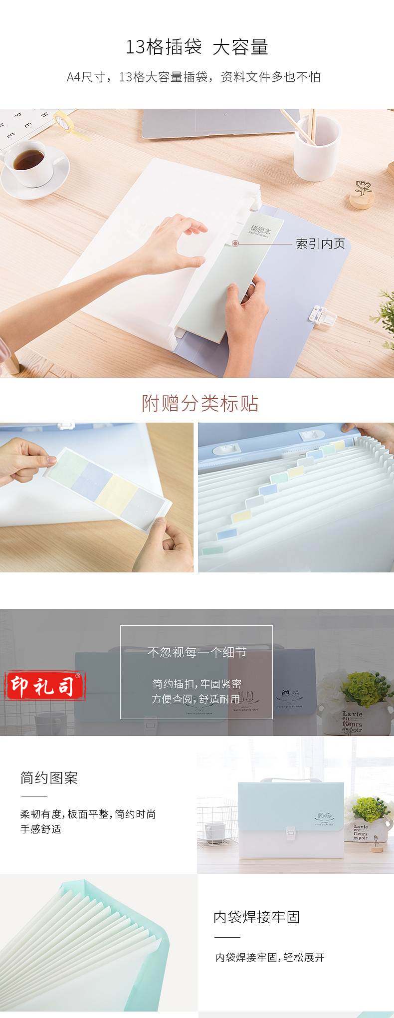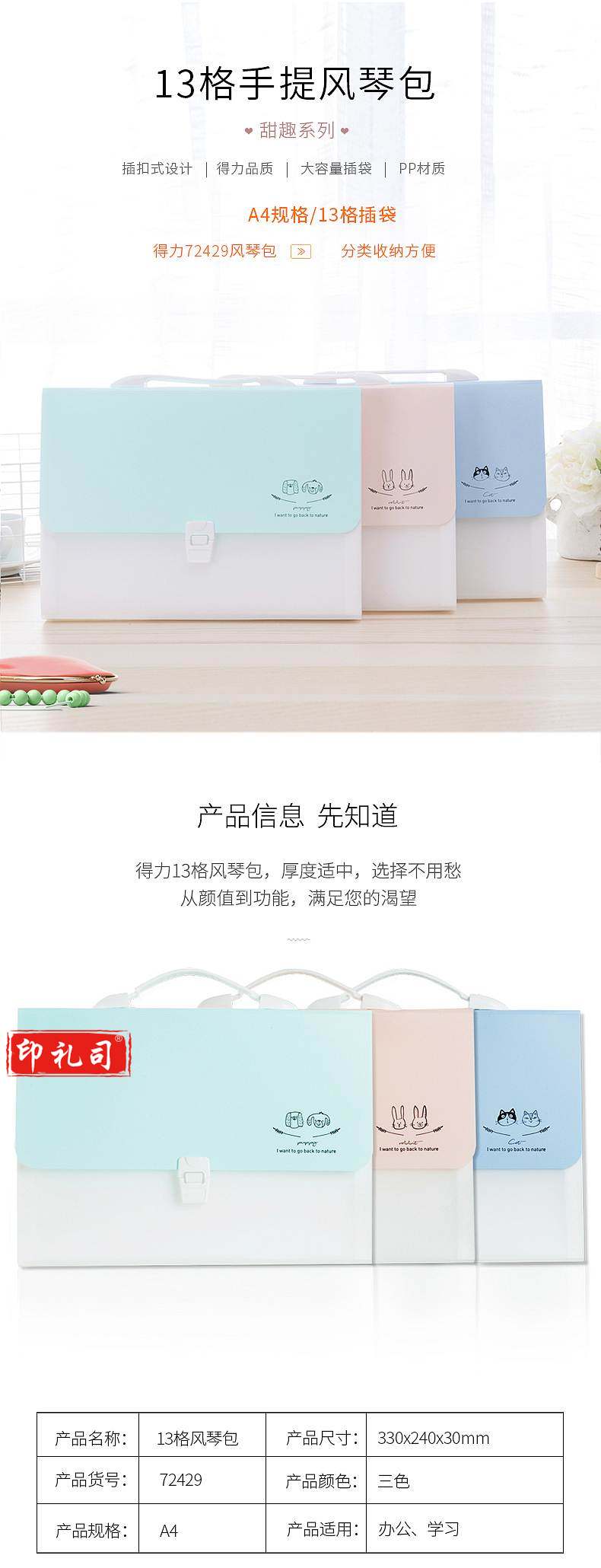 得力72429-13格风琴包多层文件夹330*240*30mm