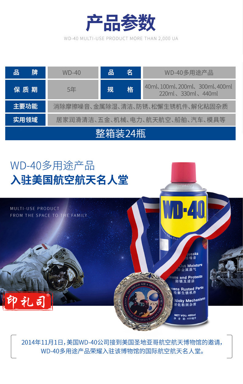 WD-40 除锈剂350ml万能防锈润滑剂 除锈剂螺栓松动剂