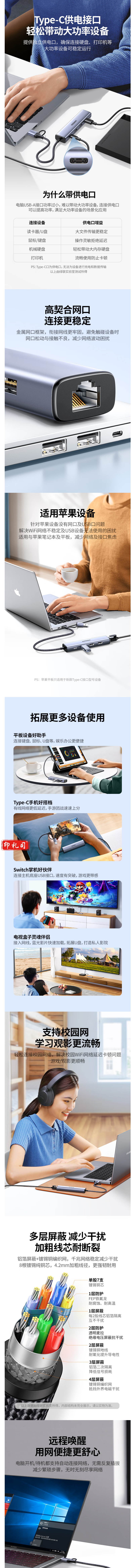 绿联 USB3.0转千兆网口Type-C扩展坞分线器 网线转接头RJ45转换器 CM475 货号:JC