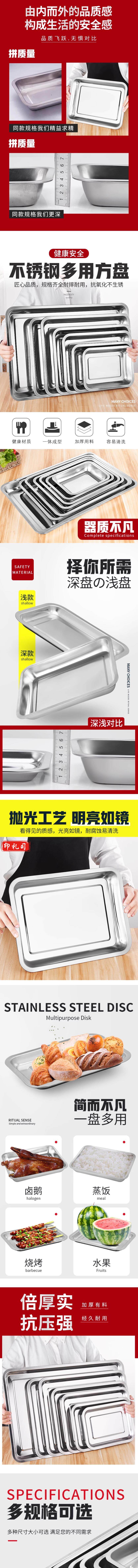 不锈钢托盘方盘蒸米饭盘长方形盘子32*22*4.8cm