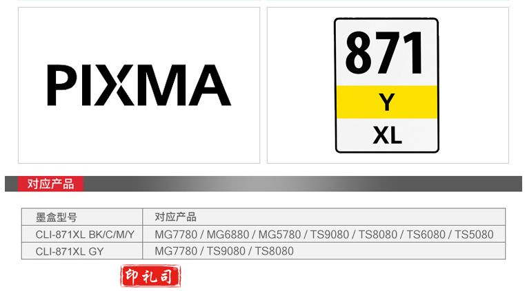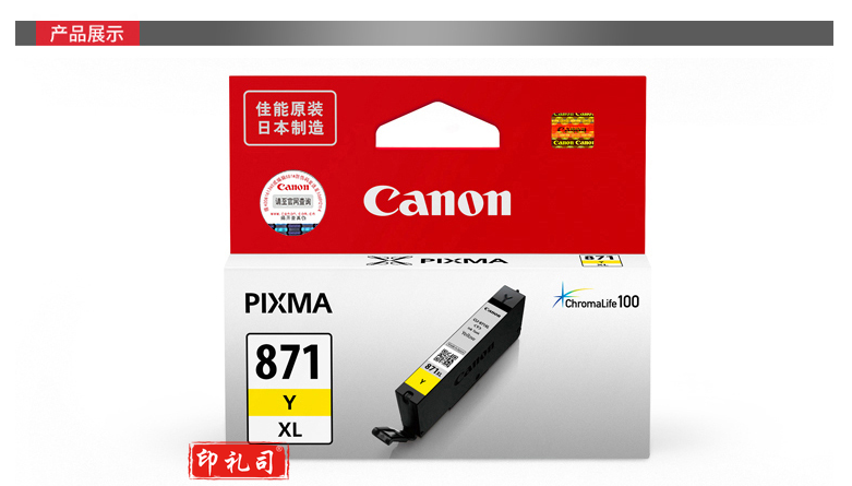 佳能(Canon)CLI-871XL Y 黄色墨盒(适用MG7780、TS9080、TS8080、TS6080)