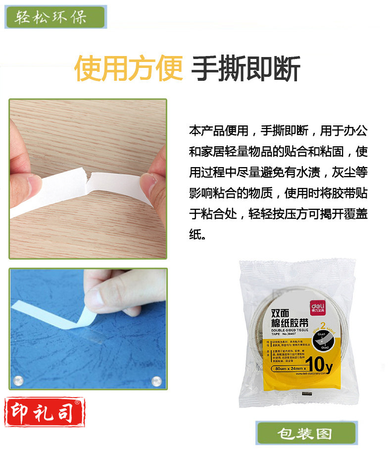 得力(deli) 30407 双面胶 棉纸双面胶带 80um粘胶层 24mm*10y