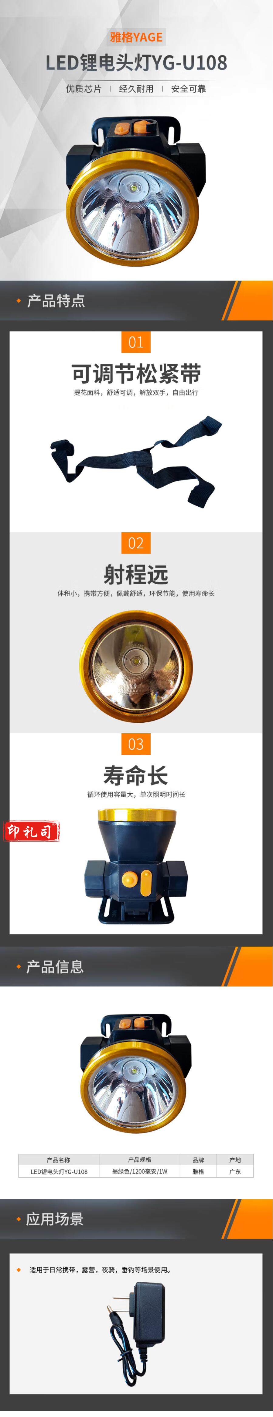 雅格 头灯充电式户外照明灯头戴手电筒探照灯 YG-U108