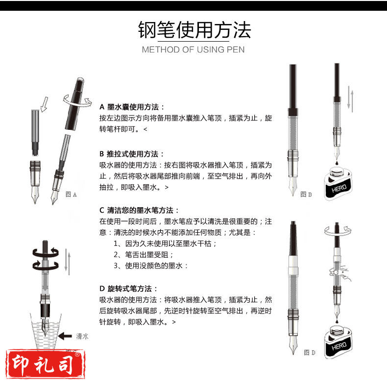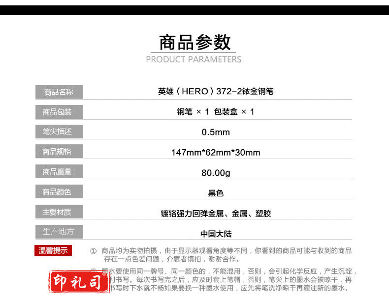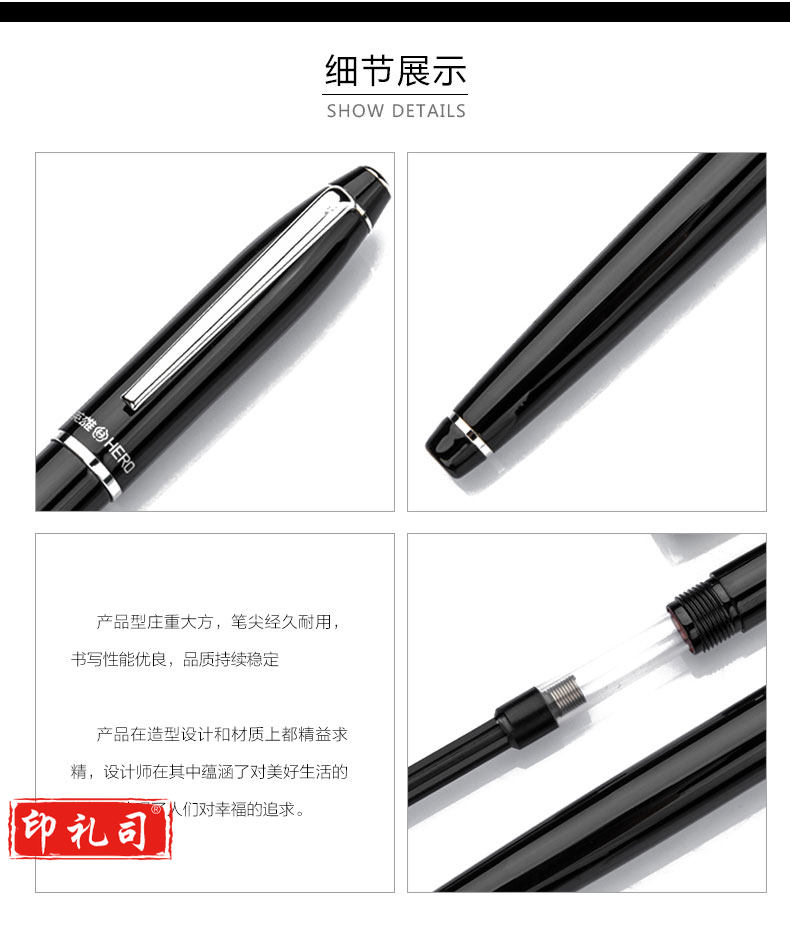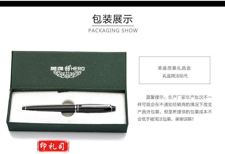 英雄(HERO)黑色铱金钢笔墨水笔暗尖 372-2