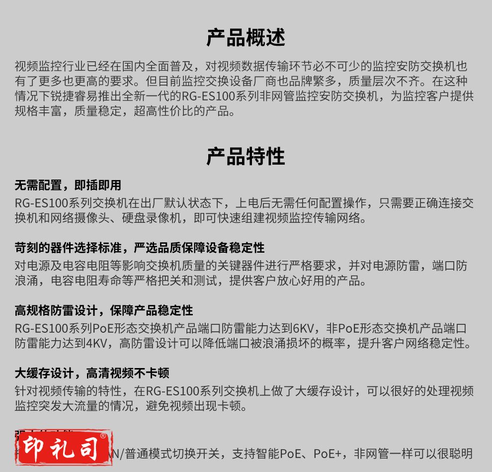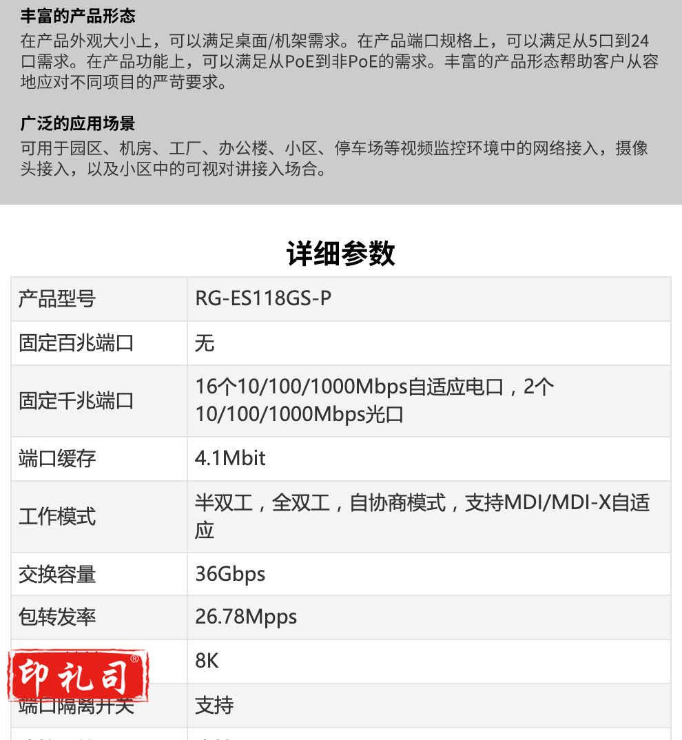 锐捷 RG-ES118GS-P 16口 非网管交换机 监控安防专用交换机