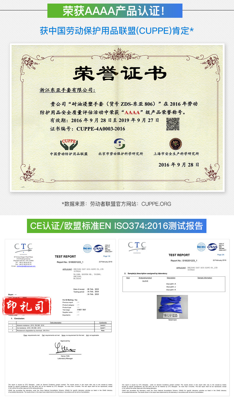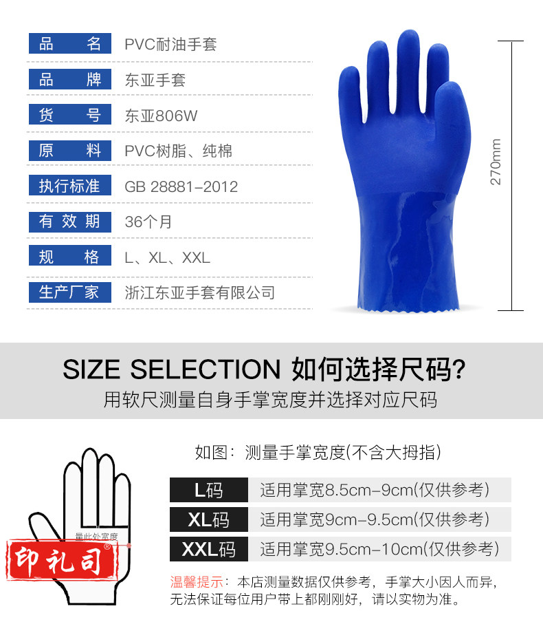 东亚(EAST)806 耐油手套耐酸碱手套工业浸塑橡胶手套劳保手套大码防水