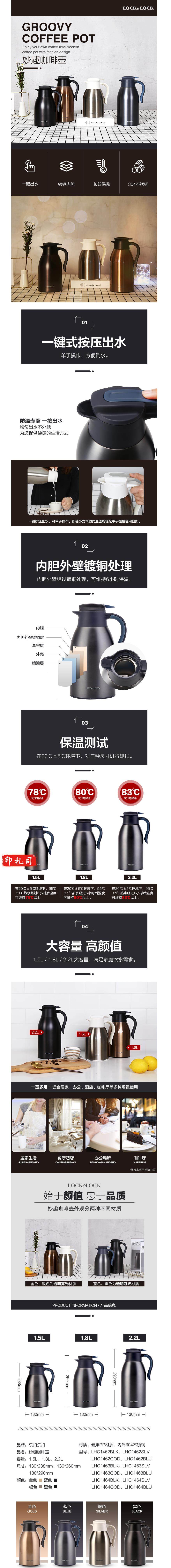 乐扣乐扣 1.8L金色 真空保温壶不锈钢保温热水瓶 LHC1463BLK