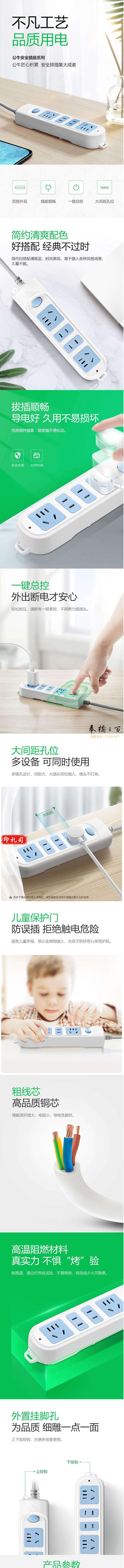 公牛GN-607 4位总控全长1.8米 插排接线板插座
