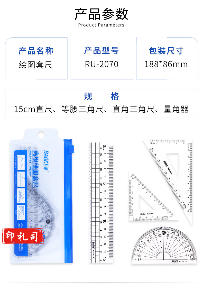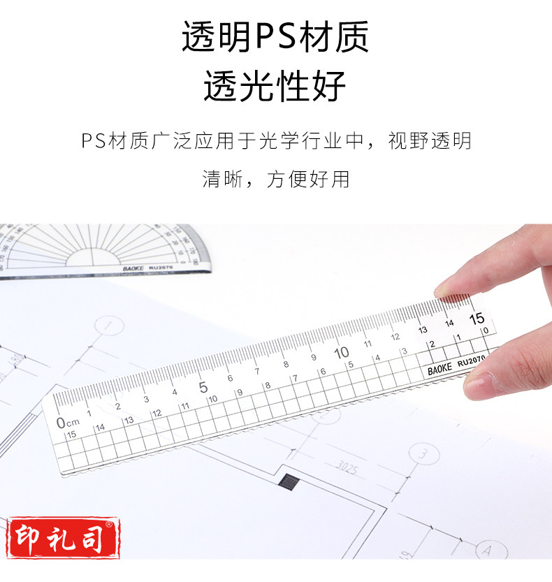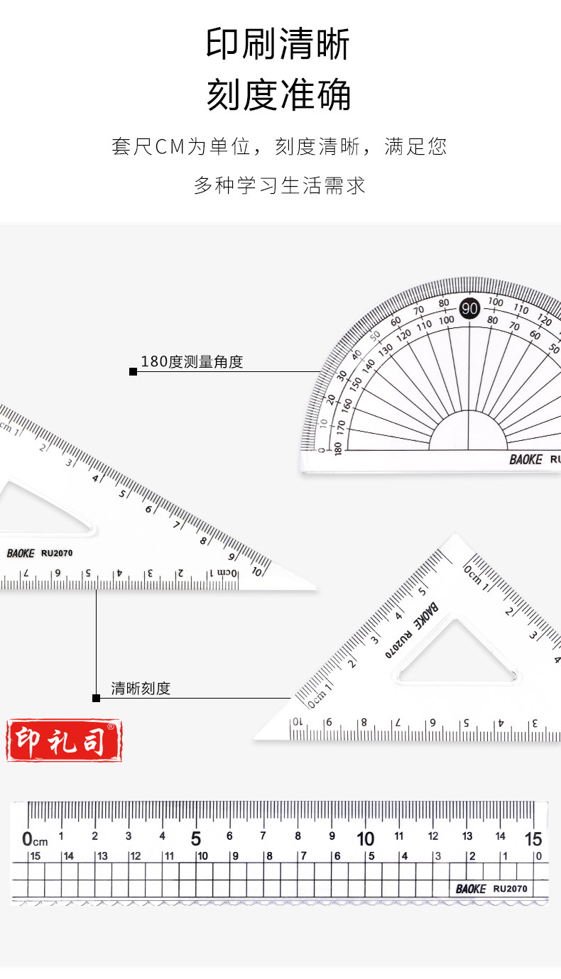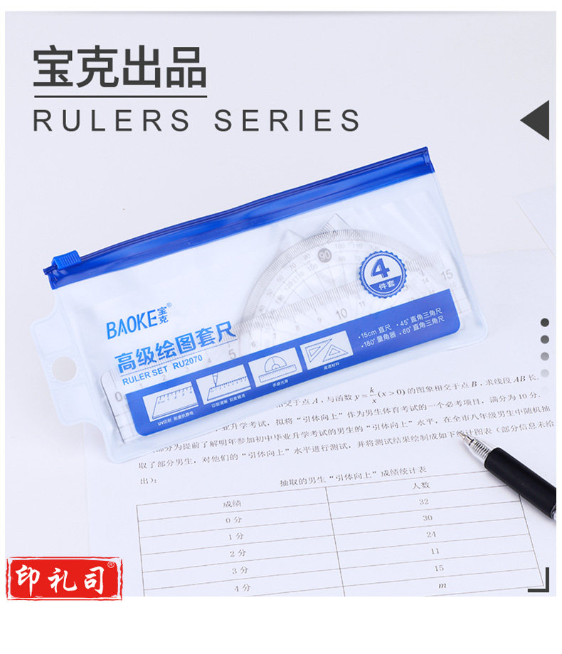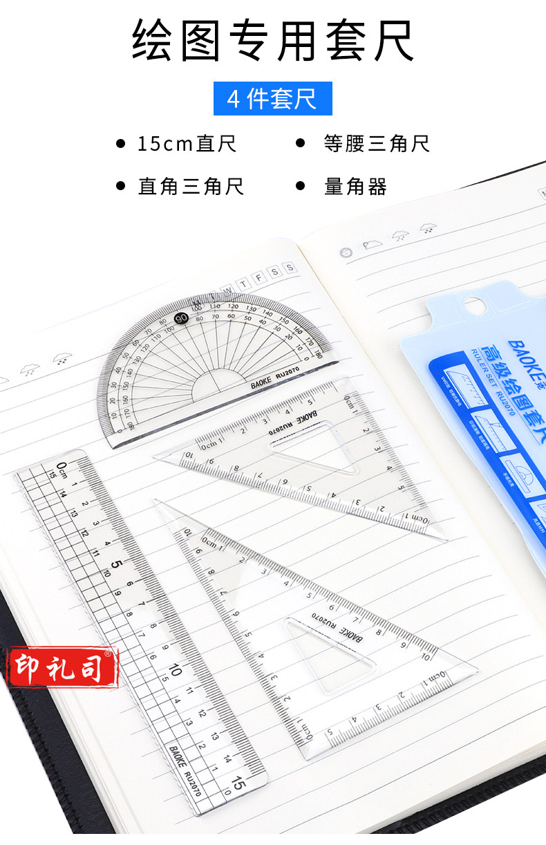 宝克品牌学生考试专用文具套装亚克力尺子套装三角绘图套尺 RU2070(绘图套尺)
