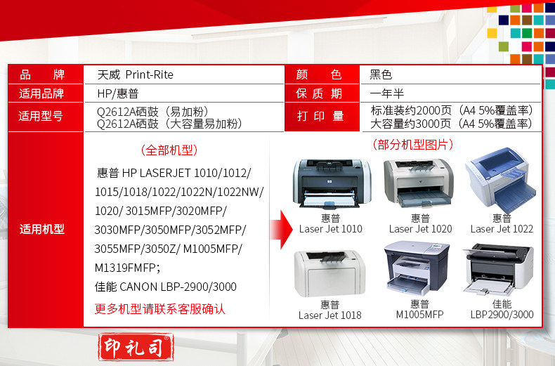 天威 Q2612A 黑硒鼓适用HP1020 1010 m1005 2900打印机硒鼓(约2000页)