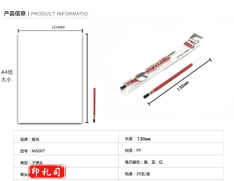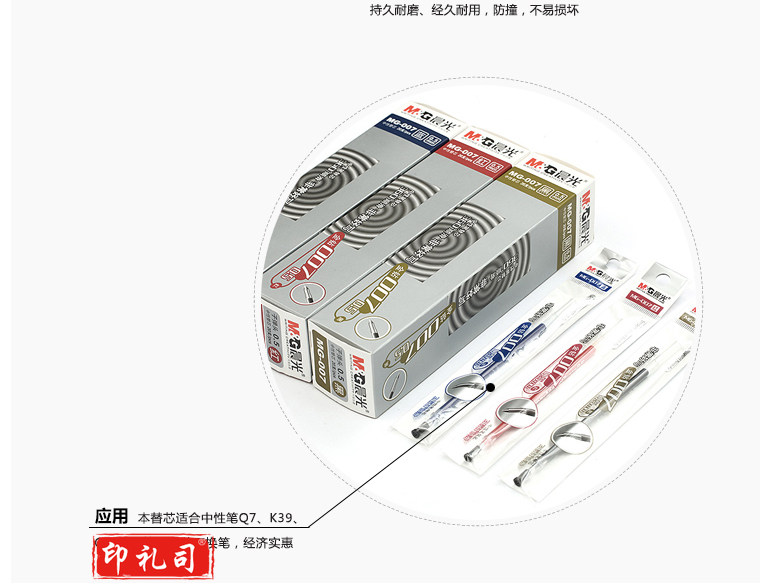 晨光 中性笔笔芯全针管替芯 拔帽签字笔芯钻石水笔芯 黑色 0.5mm子弹头MG007A 20支/包