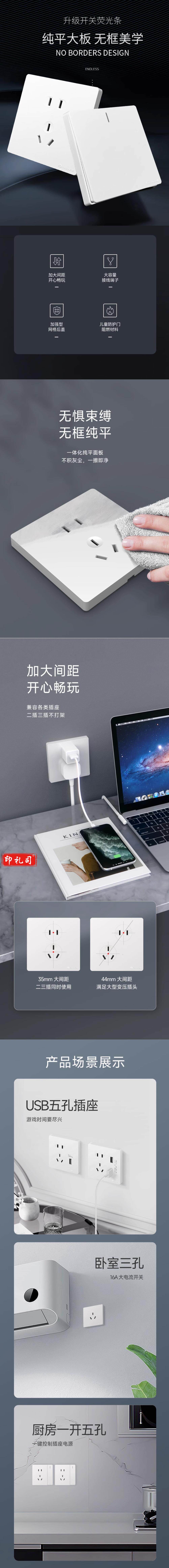 飞雕 一开五孔 开关插座单控墙壁开关插座 86型开关带插座暗装插座 雅佳白