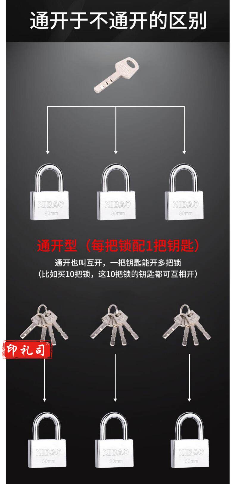 通开锁互开锁钥匙 通开32mm钥匙1把 仅钥匙不含锁 货号:YC