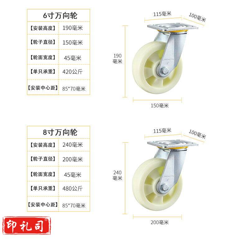 6寸转向(黄色) 尼龙轮(劲龙系列)