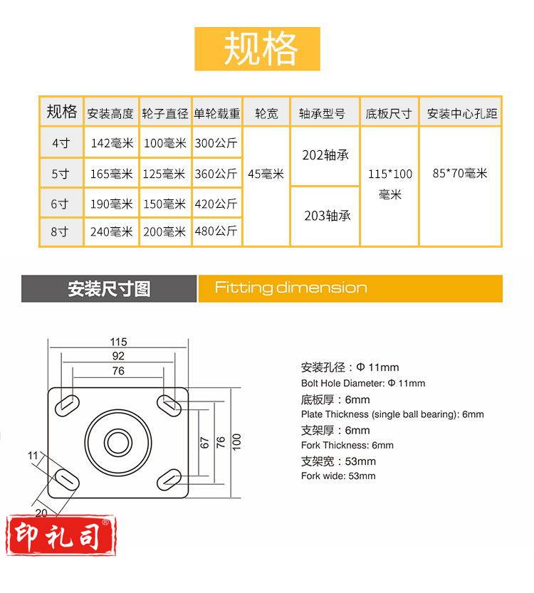 6寸定向(黄色) 尼龙轮(劲龙系列)