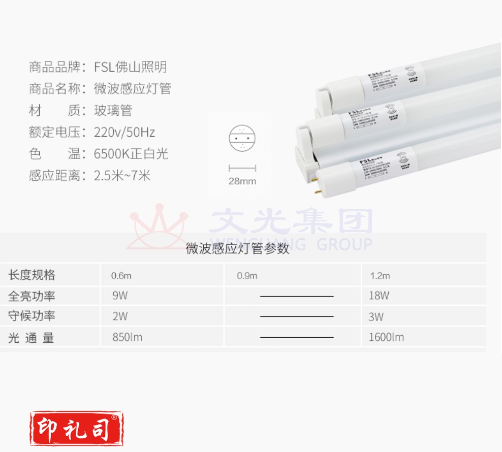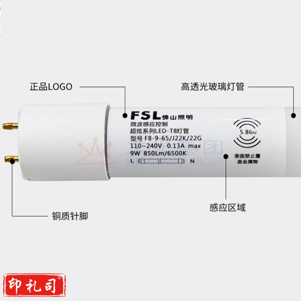佛山照明 雷达感应灯管 T8LED灯管 微波人体感应0.6米9W