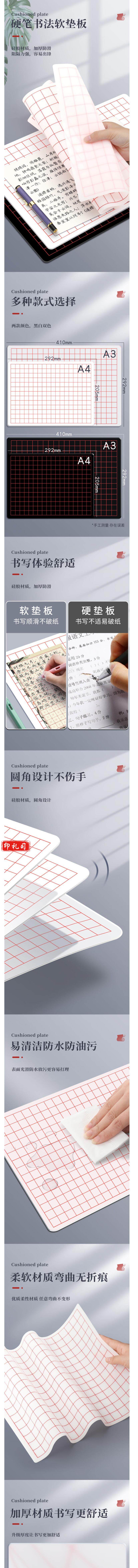 加厚硅胶硬笔书法垫板写字垫练字专用垫 A3垫板 货号:JC