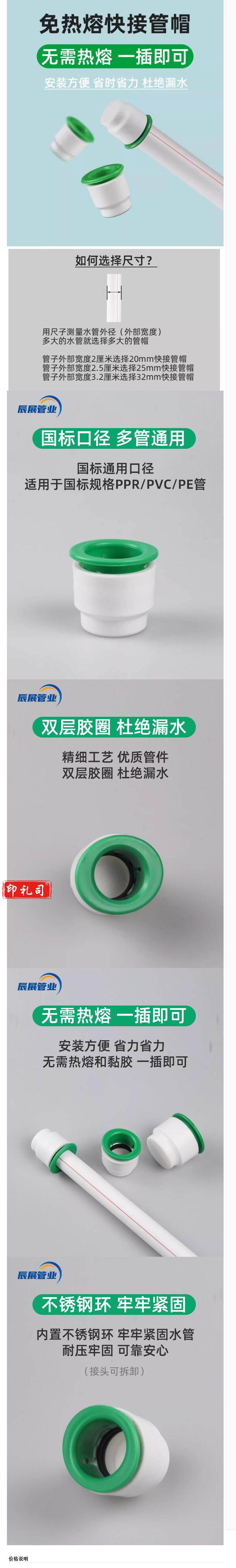 6分PPR免热熔快接堵头 快插接头管堵 货号:JC