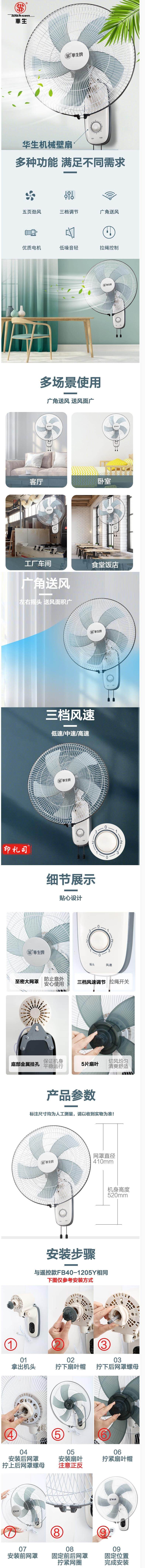 华生 壁扇 电风扇 壁挂式风扇 FB40-1205 货号:JC