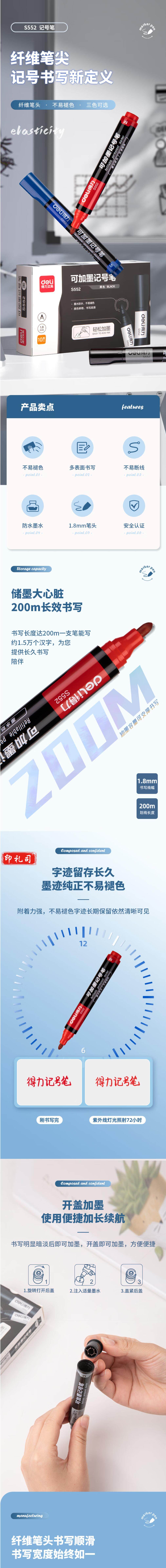 得力 S552记号粗头黑色 可替换墨水 按支销售