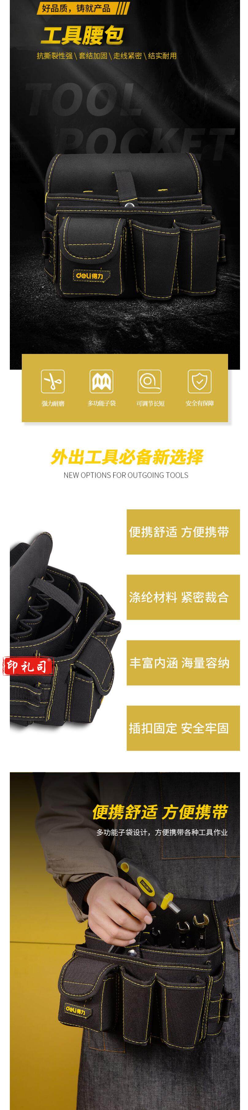 得力 工具腰包22x14x20cm涤纶电工包工具袋维修安装工具挂包DL-P4