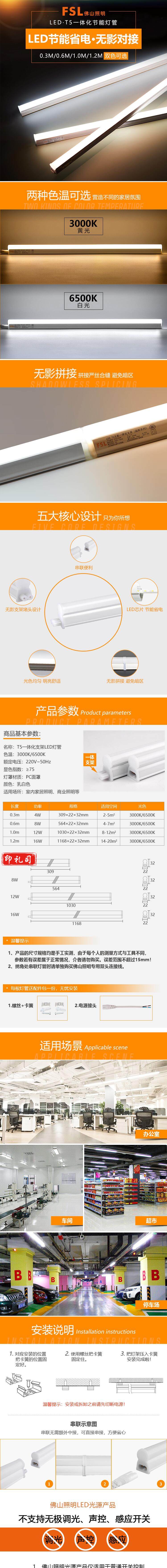 佛山 LED T5/16W 1.2米 一体化支架灯 公母插(二线))白光