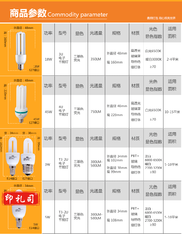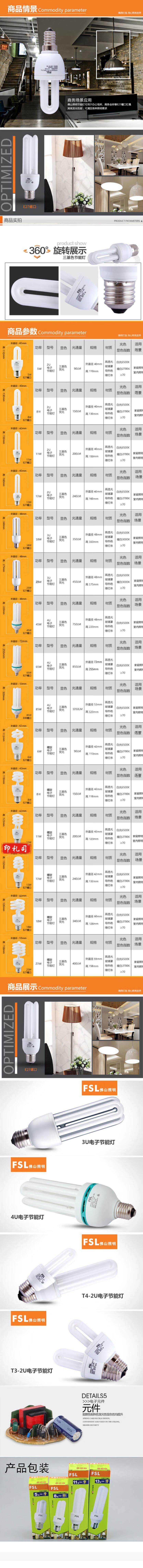 佛山照明 36W节能灯泡4U型三基色荧光E27螺口白光6500K