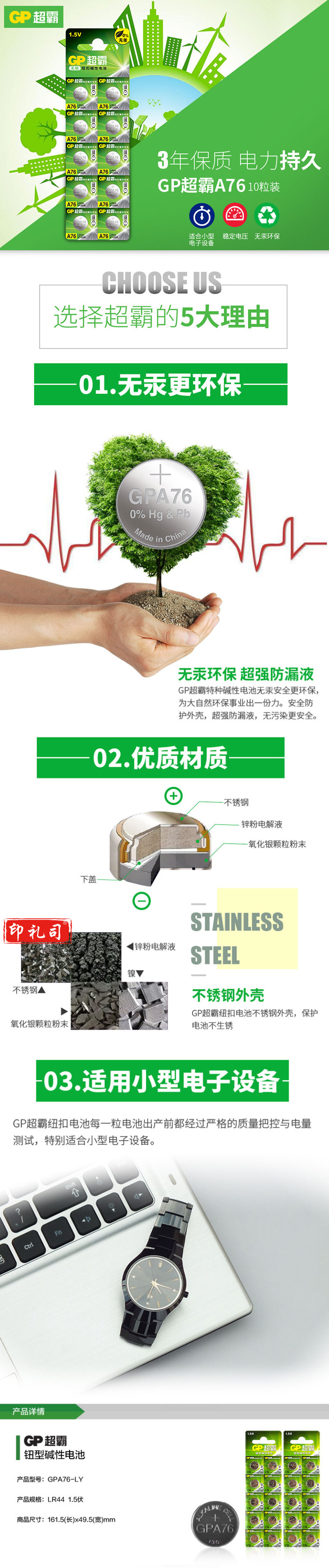 纽扣电池 A76-LY LR44 1.5V 10节/卡 (新旧包装随机发送)