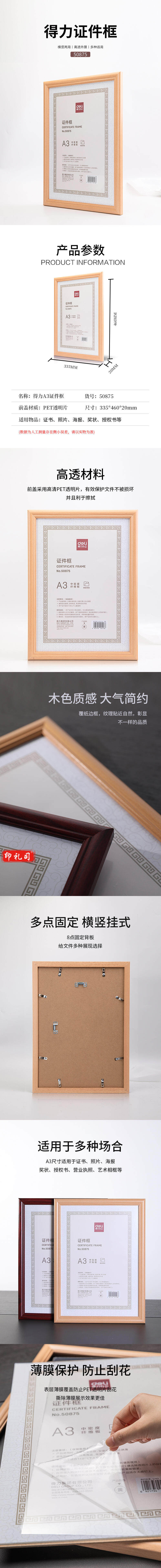 得力 A3证件相框画框证书框50875 红色 335*460*20mm