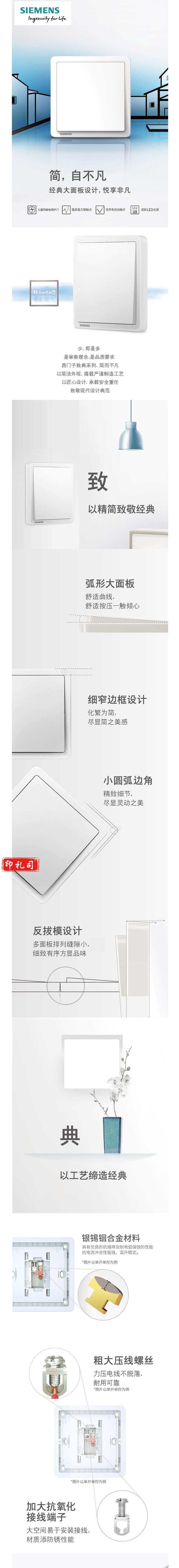西门子(SIEMENS)开关插座 二开单控带荧光开关面板致典 雅白色
