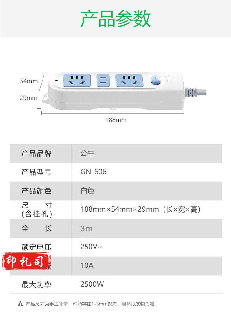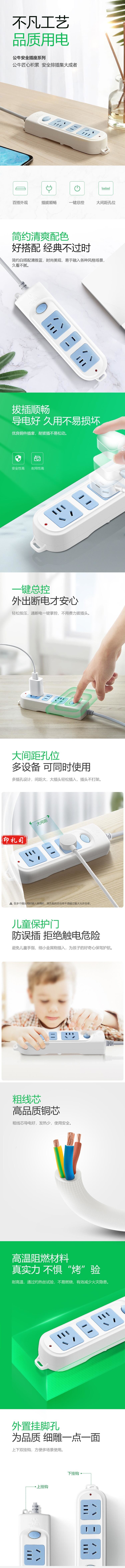 公牛 GN-606 3位总控 4米多位插座 接线板插排