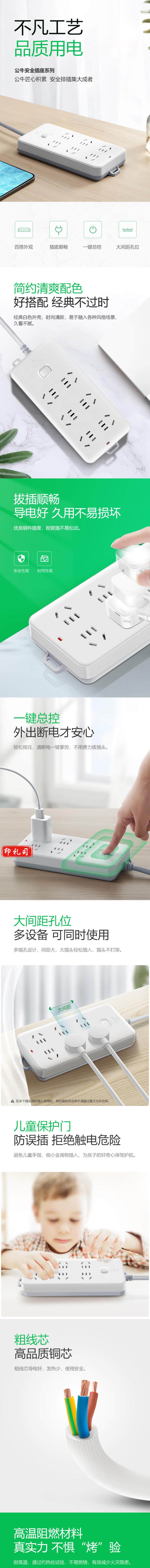 公牛GN-109K 10米线 6位总控多位插座 接线板插排