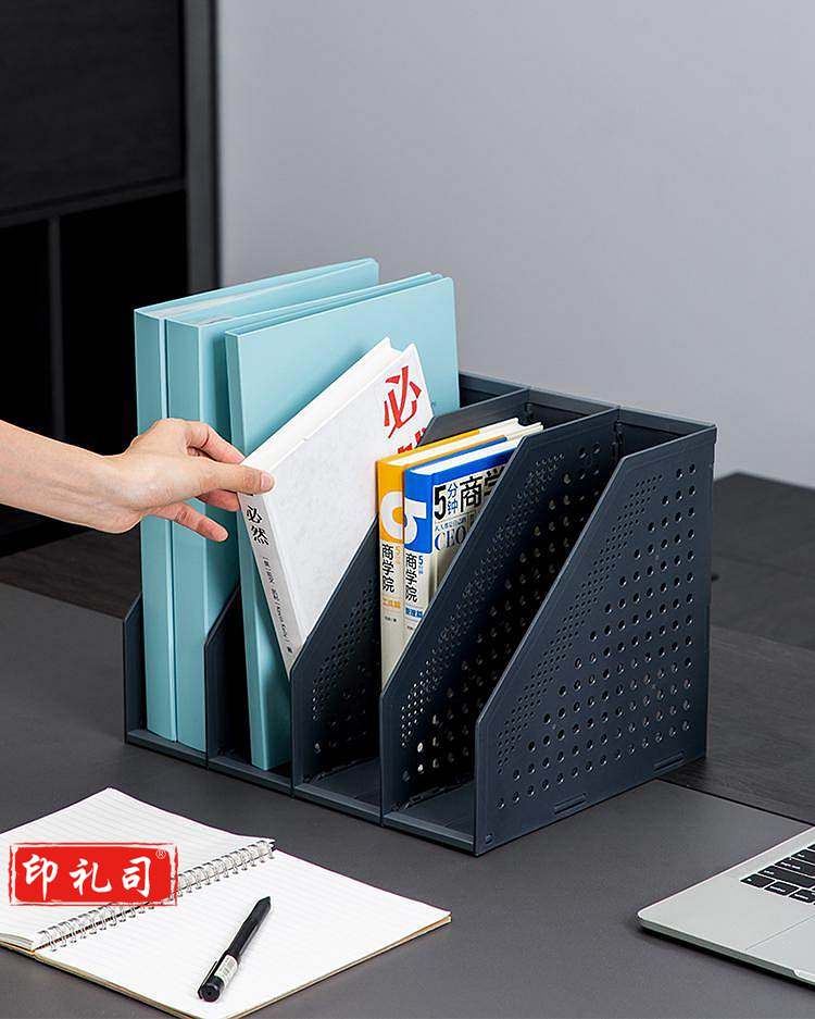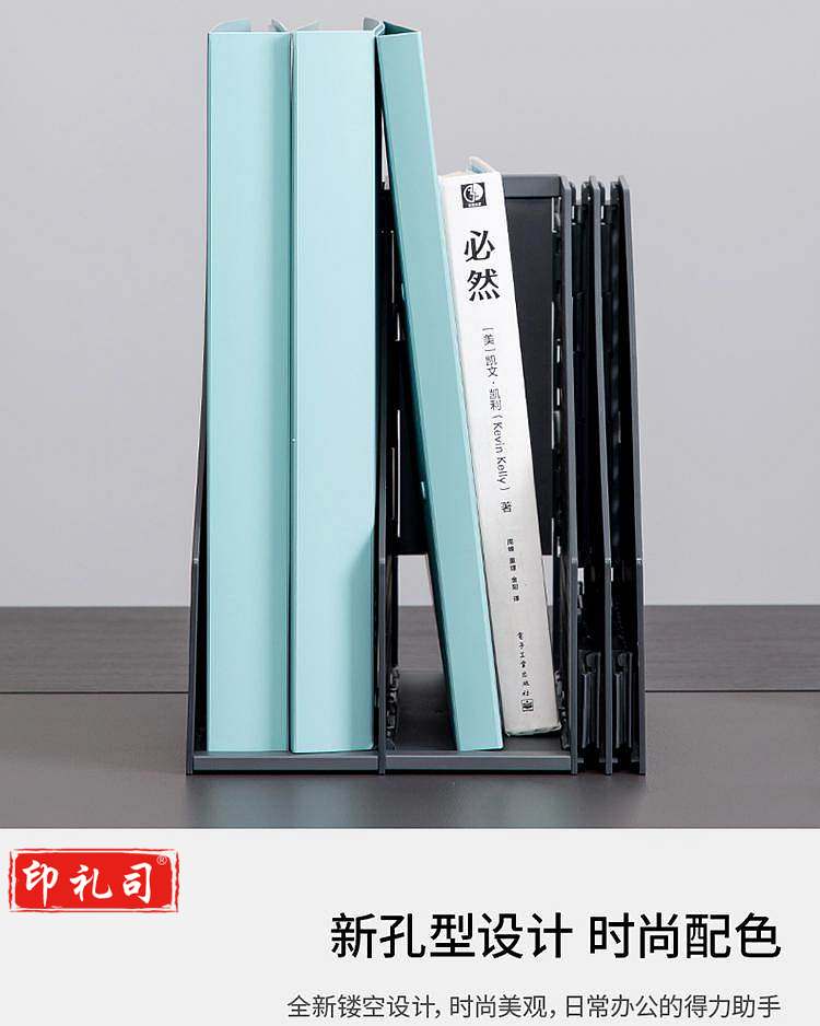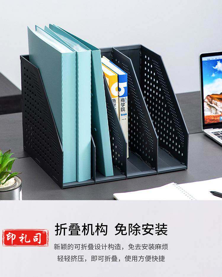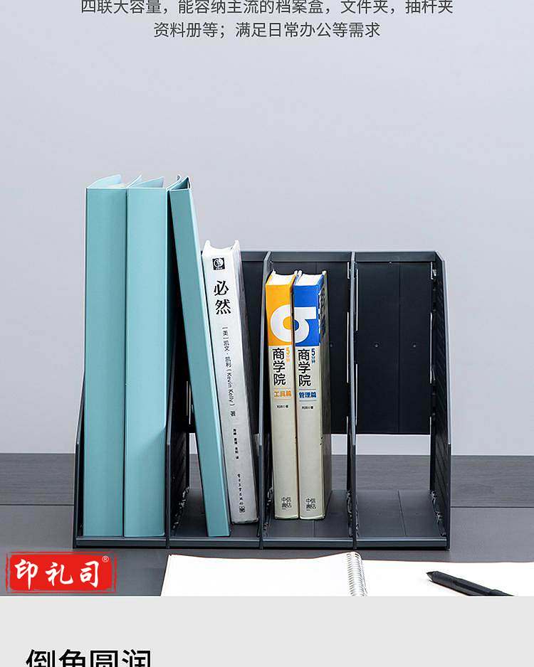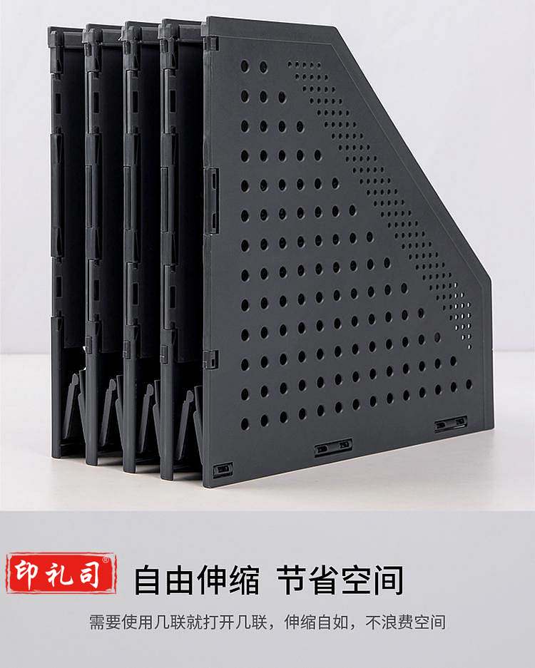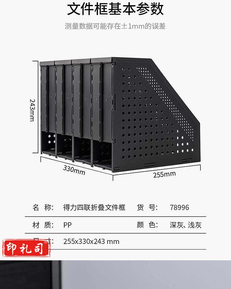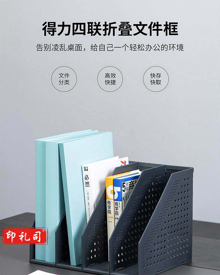 得力78996可折叠四联文件框 书立 拉伸式文件架 深灰