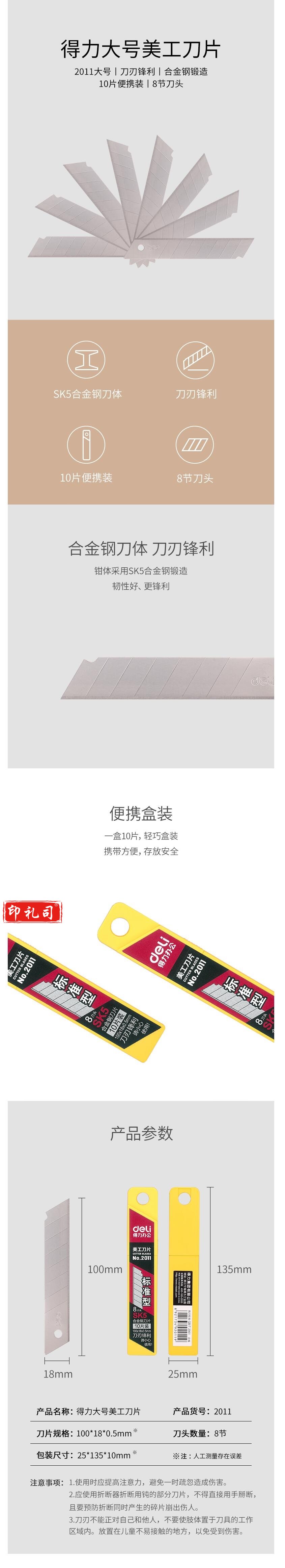 得力(deli)2011刀片 18mm 大号美工刀片壁纸墙纸刀片裁纸刀片10片/盒装