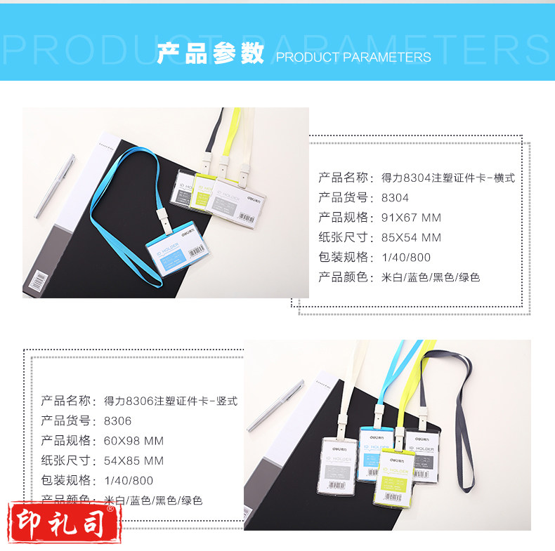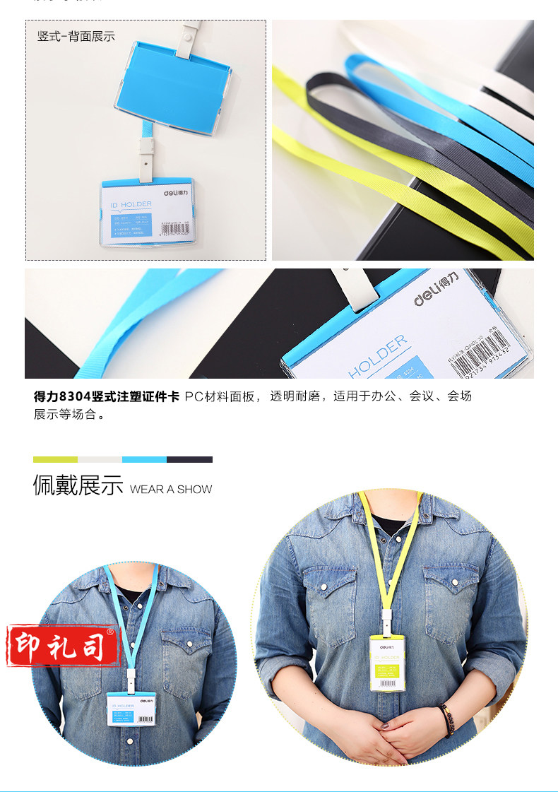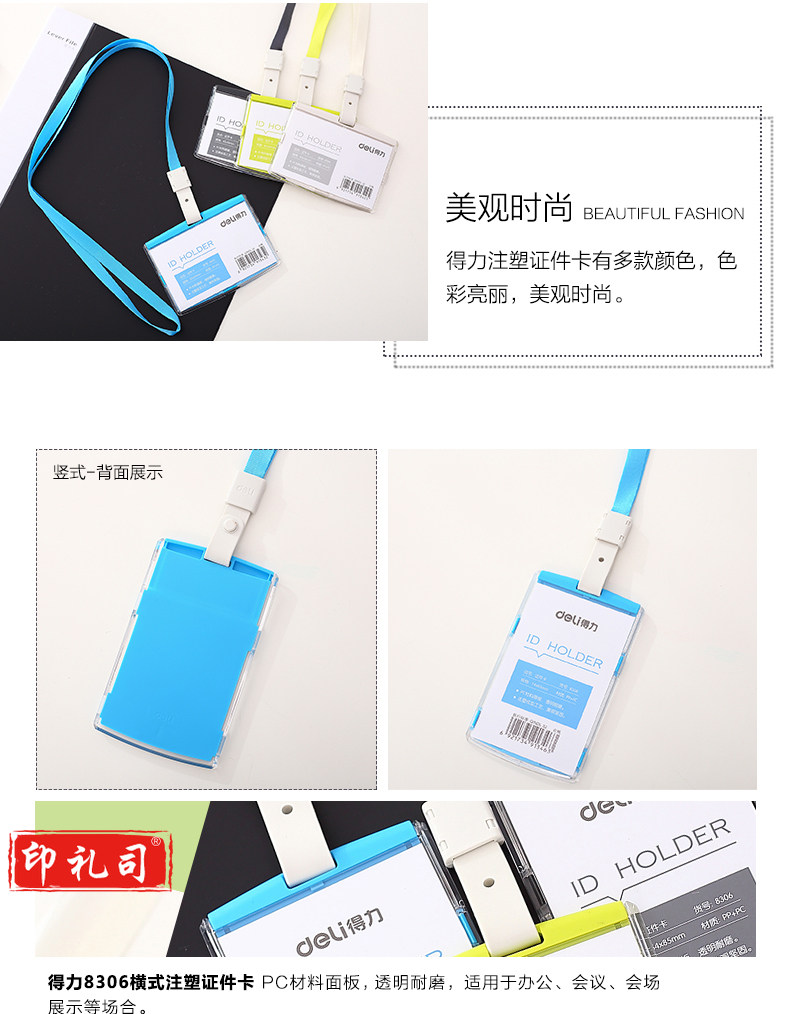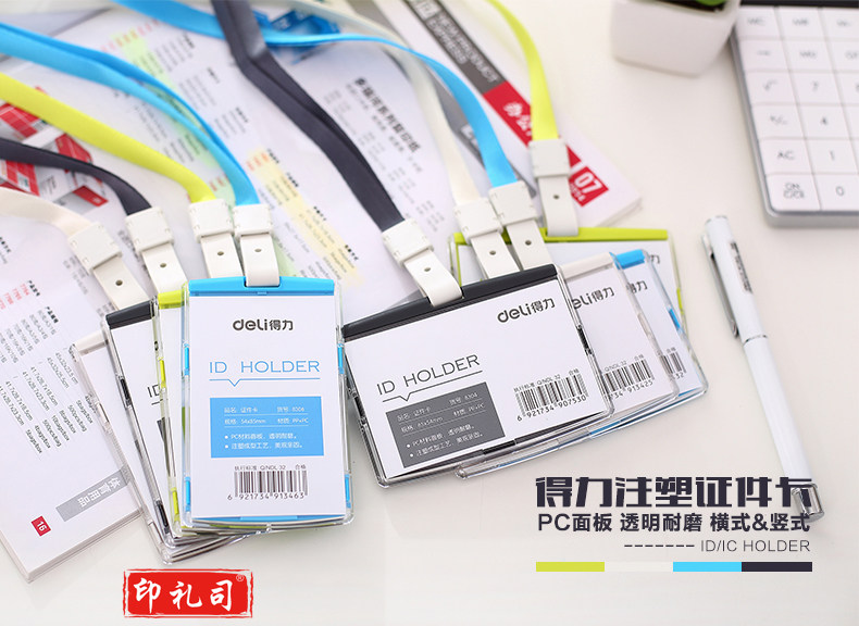 得力(deli)彩色证件卡工作证件套胸卡工作牌吊牌挂绳套装工作证卡套 1个 8304绿色
