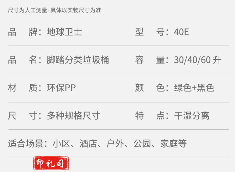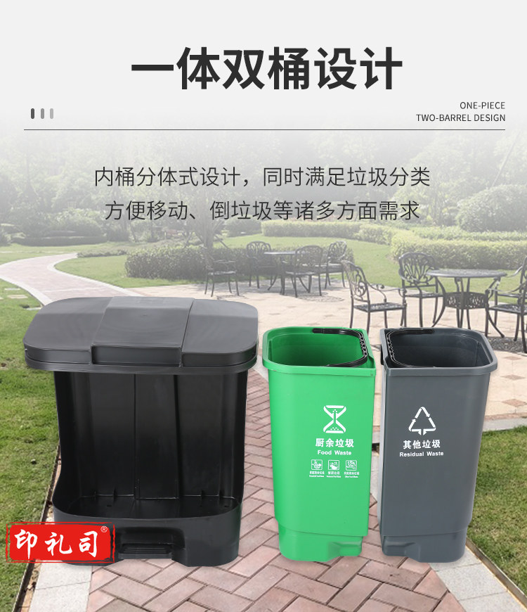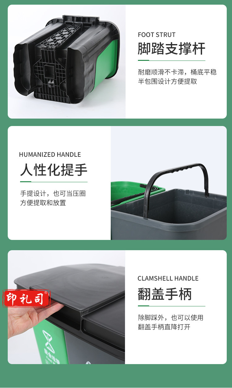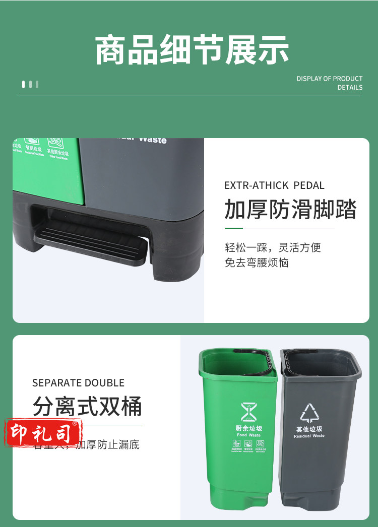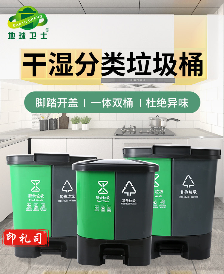 地球卫士 40L双桶脚踏垃圾桶带盖分类垃圾桶厨房商用塑料40升垃圾桶(绿+黑)