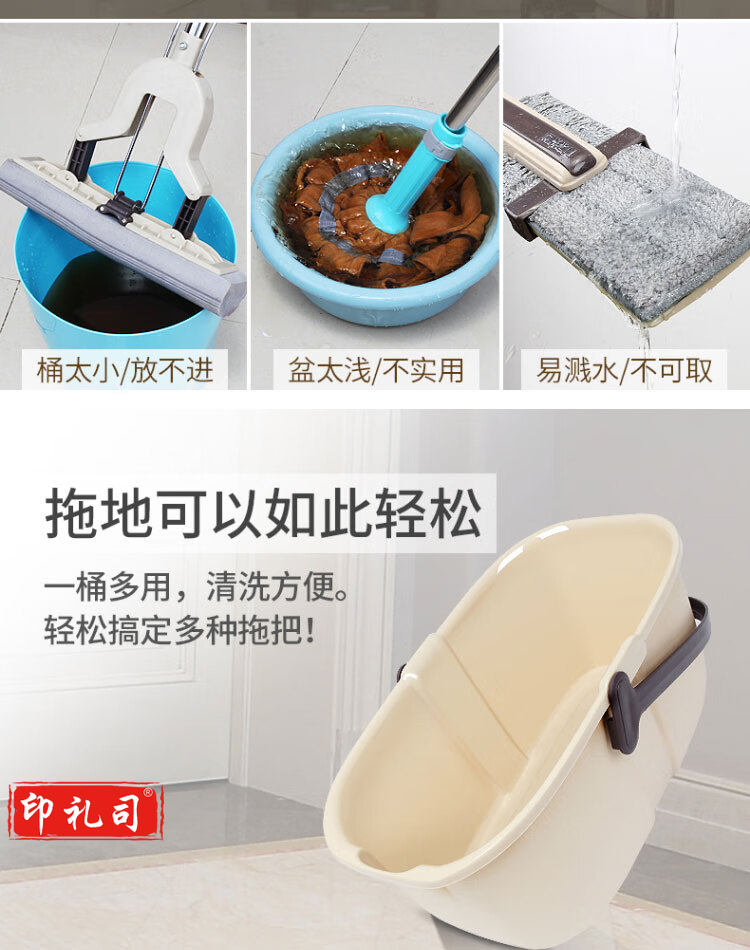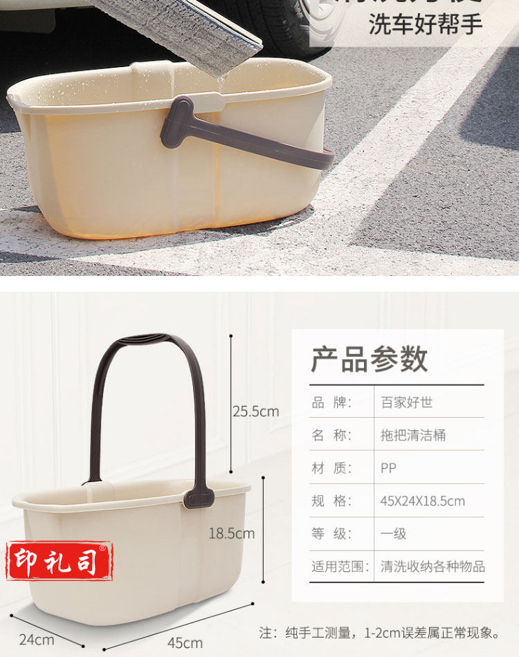 百家好世 加厚洗拖把桶长方形拖布桶挤水清洁洗车桶家用塑料墩布桶提手水桶