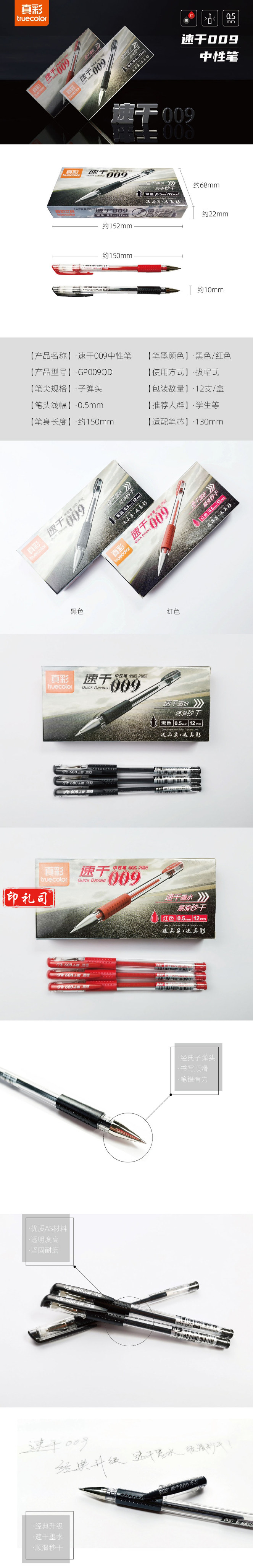 真彩 GP-009 速干中性笔/办公笔 0.5MM 黑色