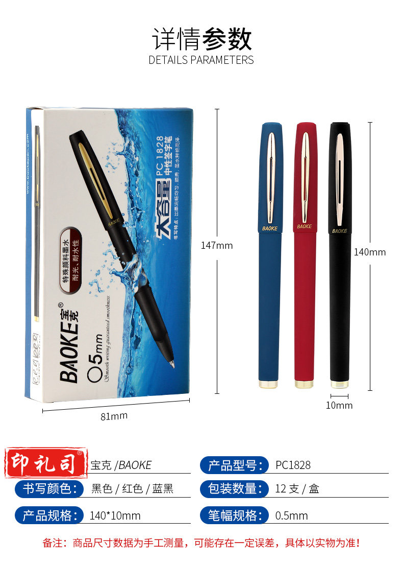 宝克(BAOKE) PC1828 黑色中性笔(0.5mm 单支装)