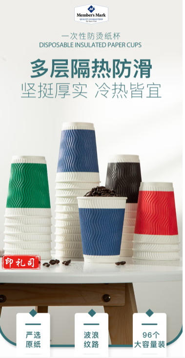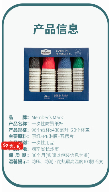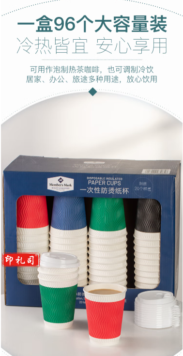 MEMBEI'SMARK 一次性防烫纸杯 430ml*96+20个杯盖