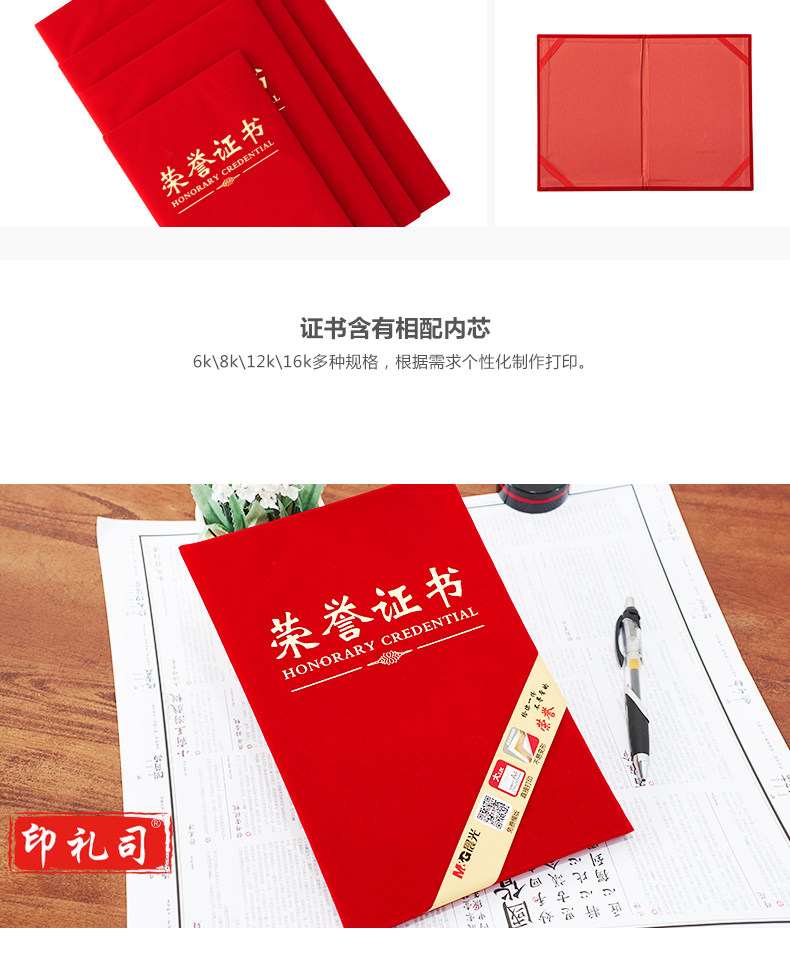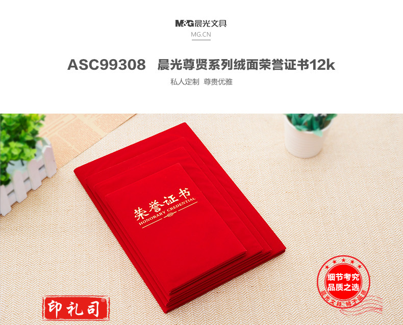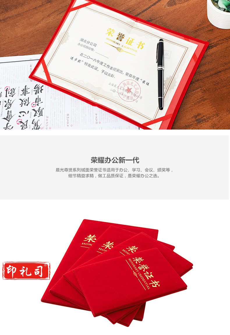 晨光ASC99308 尊贤绒面荣誉证书12K