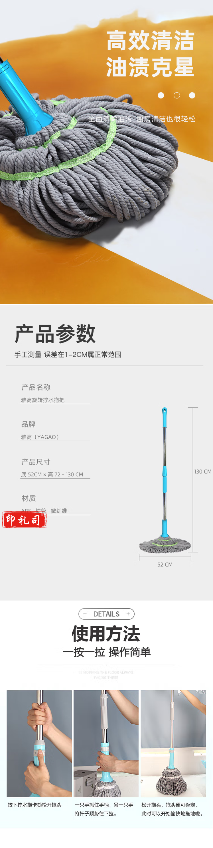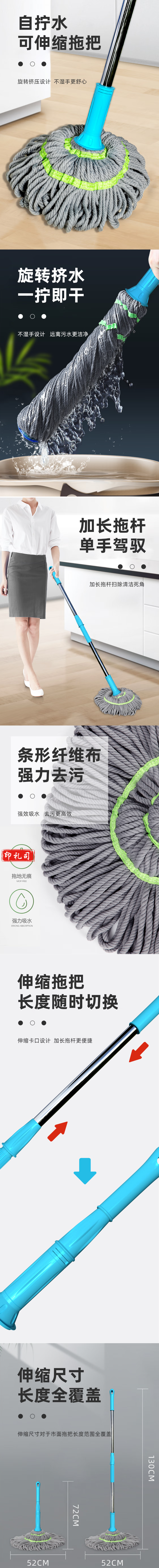 雅高 拧水拖把 必卡锁自拧水拖把 旋转拧水拖把免手洗墩布拖布