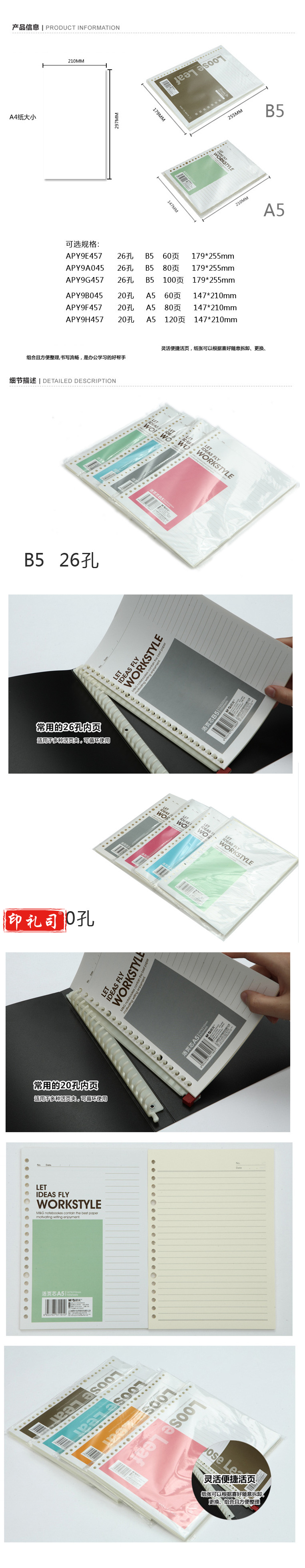 晨光APY9G457活页本/内芯 B5 笔记本内芯 记事本内芯