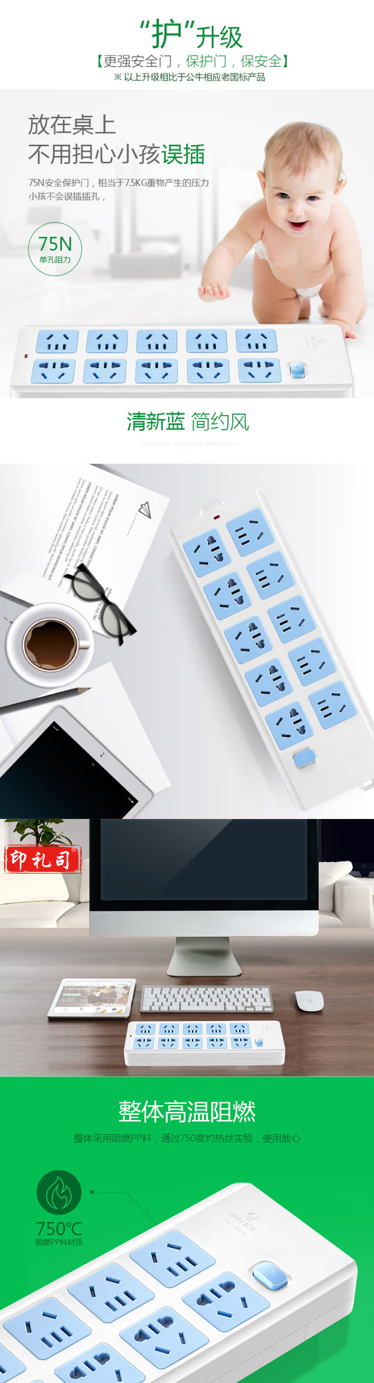 公牛(BULL)GN-605W 超功率过载保护插座插线板/插排/排插/接线板/拖线板 无线 10插位 10A 250V