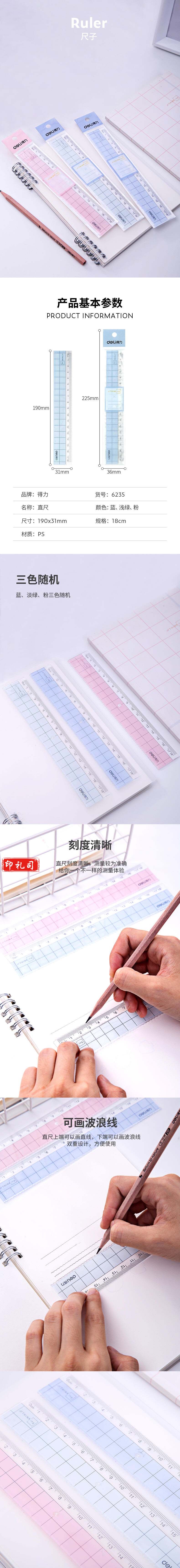 得力6235 学生直尺 尺子 波浪形创意直尺 18cm 蓝绿粉三种颜色随机