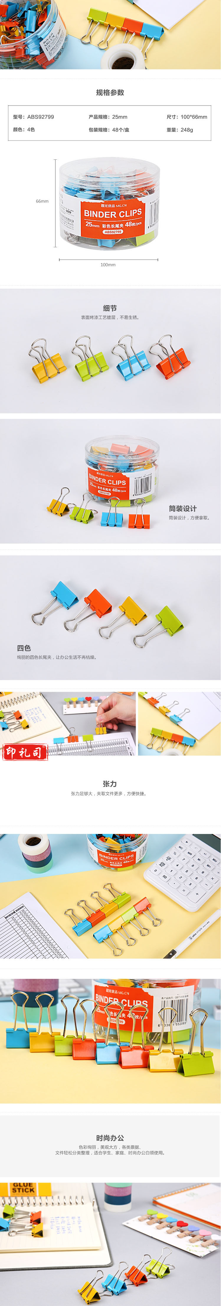 晨光(M&G)ABS92739 彩色长尾票据夹 彩色燕尾夹大中小号蝴蝶夹凤尾夹 41mm24个/筒 1筒