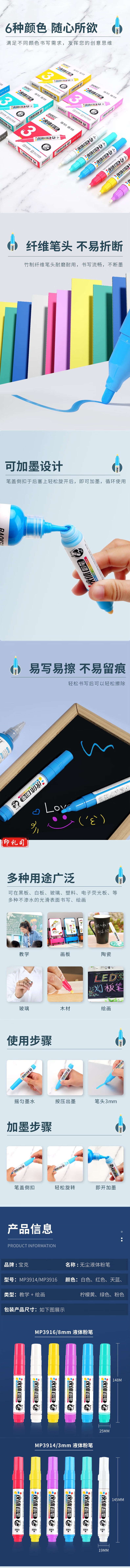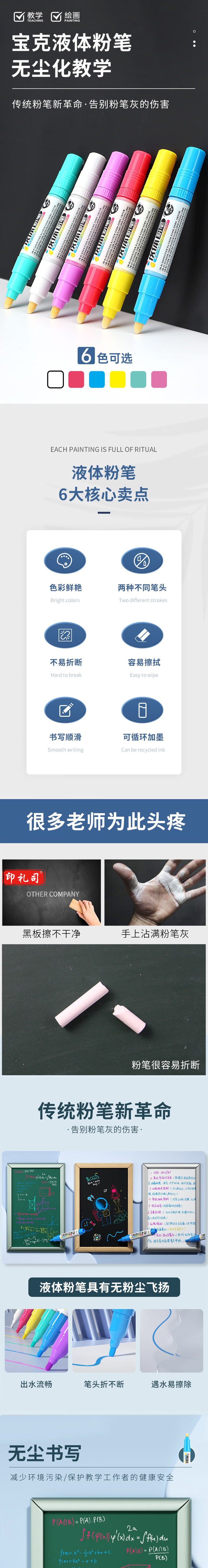 宝克(BAOKE) MP3914 彩色白板笔 液体粉笔老师无尘化教学 白色3mm(6支装)可加墨水液体粉笔